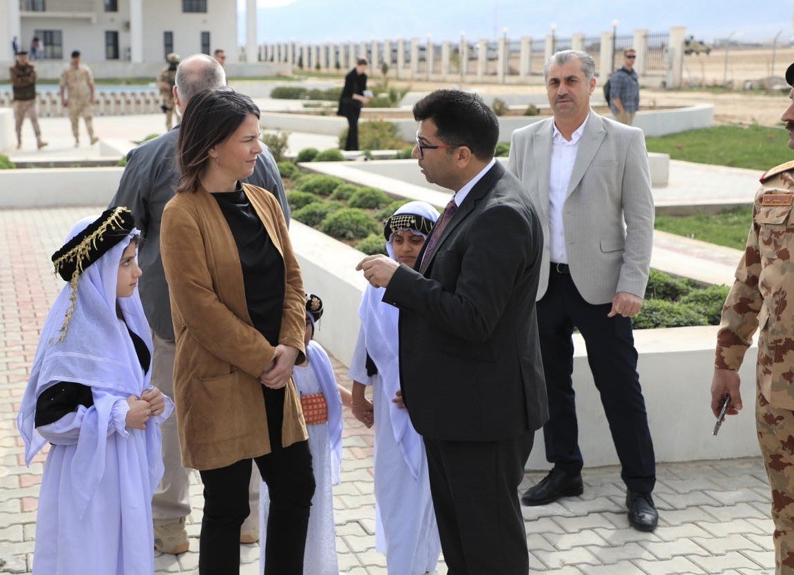 Hoher Besuch im HOUSE OF COEXISTENCE (HOC) in der Sinjar-Region, Irak (Shingal). In den Räumen, in denen an normalen Tagen auch die Schüler unseres komprimierten Bildungsprogramms lernen, saß heute Annalena Baerbock zum Austausch über das Leben in der Krisenregion. Vor wenigen Jahren hatte in dieser Region der brutale Völkermord an den Jesiden durch den IS stattgefunden.